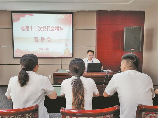 6月22日一早,省党代表、开云集团官网首页党委书记、副总经理李明辉在党员活动室向公司党员宣讲党代会精神。