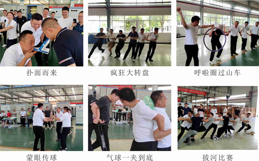活动伊始,万洲电气工会主席、行政部经理熊海娟为大家介绍了趣味运动会的项目类别和游戏规则。在大家的期待中,第一个游戏《扑面而来》开始了,各队商量对策、探讨技巧,口含纸张,小心翼翼地运转面粉;《疯狂大转盘》让大家感到新鲜刺激,6名队员紧握长杆,内圈外圈默契配合,齐心协力冲向终点;《呼啦圈过山车》比拼队员的身体协调性和队员间的协作,各大队抢速度、比技巧,一不小心钻进圈内难以脱身,看得大家忍俊不止;“向左、向右、向前”,随着队长的口令,队员们蒙上双眼连转三圈后再向队员传球,转晕的、蒙圈的、南辕北辙的......《蒙眼传球》的游戏嗨翻全场,笑声、口令声让现场“火力”十足。考验各大队吹球、运球、夹球的默契配合的《气球一夹到底》游戏赢得观众的阵阵喝彩。在裁判的一声令下,最后一个项目《拔河比赛》把整场活动推向高潮,各队队员摩拳擦掌、铆足干劲,加油声、呐喊声让大家感受到万洲销售团队无穷的力量!