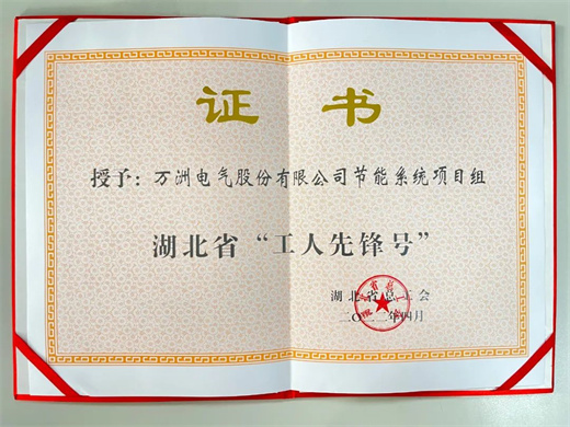 日前,从湖北省总工会获悉,万洲电气节能系统项目组被授予“湖北省工人先锋号”荣誉称号。