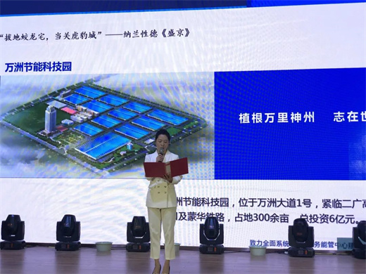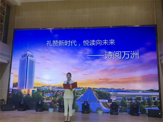 随后,在大家热烈的掌声中,万洲电气行政部宣传干事张红云第一个走上舞台,向大家展示独具特色的万洲企业文化。11首精妙绝伦的诗句,展示了万洲电气从无到有、从小到大的不凡历程。“千磨万击还坚劲,任尔东西南北风”,张红云声情并茂的诵读,或充满艰辛,或慷慨激昂,或充满力量,或信心昂扬,让大家感受到万洲电气不畏艰难,不言放弃,笃定前行,创造奇迹的勇气和力量!作为一名万洲人,要爱读书,多读书,读好书,共同建设更有文化底蕴的万洲电气,张红云用激情和自信演绎了万洲企业文化的无限魅力,赢得了现场观众的热烈掌声。