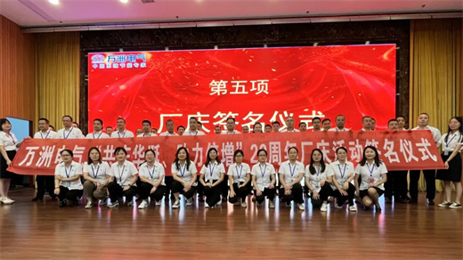 重温万洲人誓词、集体献礼、员工代表发言、签字仪式,在厂庆活动各环节中,大家热情高涨,欢声笑语,掌声雷动。“我是万洲人,我保证做到:认同万洲理念,忠于万洲事业……”,在万洲电气总经理助理、企业发展部经理沈潇的带领下,大家重温万洲人誓词,铮铮誓言,响彻四方!接着,万洲电气市场、研发、产品和综合管理四大部门、云川光电、襄阳工厂、万洲机械组成的七大方阵满怀激情、斗志昂扬地献礼万洲华诞。随后,在李总、包总、峰总、邦总的带领下,集团公司全体干部、后备干部、班组长及23名员工代表分别上台签名,表达对公司的祝福,签署对立足岗位、奉献万洲的承诺。