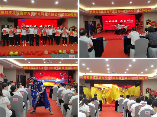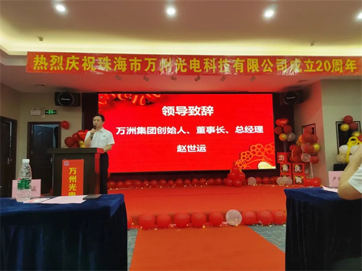 秋高气爽云淡风清,欢聚一堂共享荣光。11月6日下午16:18分,珠海市华枫酒店掌声雷动、气氛热烈。万洲集团旗下子公司——珠海市万州光电科技有限公司二十周年厂庆活动正在隆重举行。万洲集团董事长、总经理赵世运携公司领导班子带领万洲电气、云川光电、襄阳工厂、万洲机械部分优秀干部、员工代表三十余人参加活动,本次厂庆活动特邀万洲集团公司领导班子家属一同出席,与万洲集团珠海、襄阳、武汉三地员工代表共襄盛会、共享荣耀!