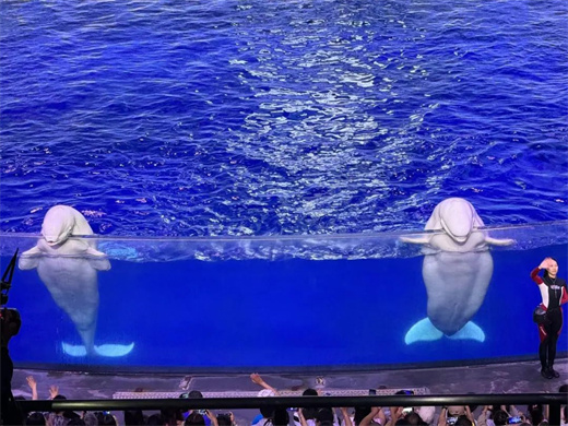 旅游团第一站来到集海洋动物展示、表演和娱乐设施于一体的主题公园珠海长隆海洋王国。一天的海洋王国之旅,精彩绝伦的海豚、白鲸动物表演,奇妙无比的梦幻海洋世界、色彩斑斓的夜光大巡游、五彩缤纷的梦幻烟花秀让旅游团流连忘返,大开眼界。