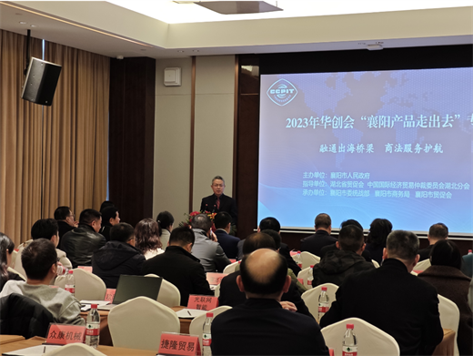 11月18日下午,2023年华侨华人创业发展洽谈会(简称华创会)“襄阳产品走出去”专场活动在襄阳民发瑞际酒店成功举办。湖北省贸促会二级巡视员卢昆祥、襄阳市商务局局长陈永涛现场致辞,市委统战部领导,在华境外机构、侨商代表出席活动。