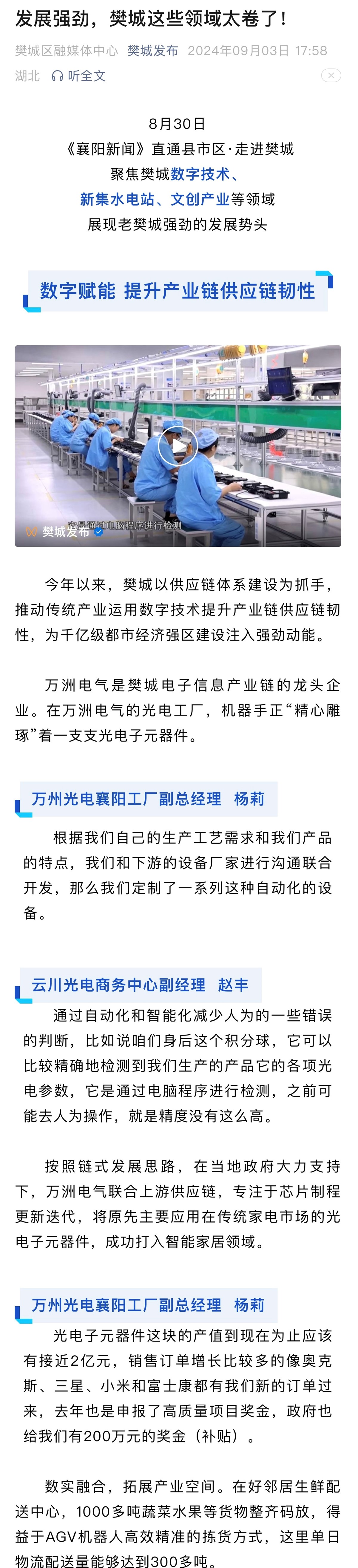 8月30日,《襄阳新闻》直通县市区·走进樊城聚焦樊城数字技术、新集水电站、文创产业等领域展现老樊城强劲的发展势头