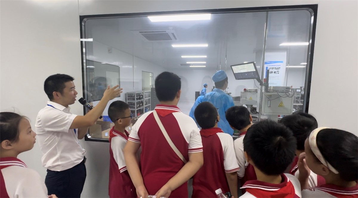 随后,同学们来到了万洲集团·光电工厂,现代化的生产车间、充满科技感的红外接收发射元器件给同学们带来了一场别开生面的科技探索体验。