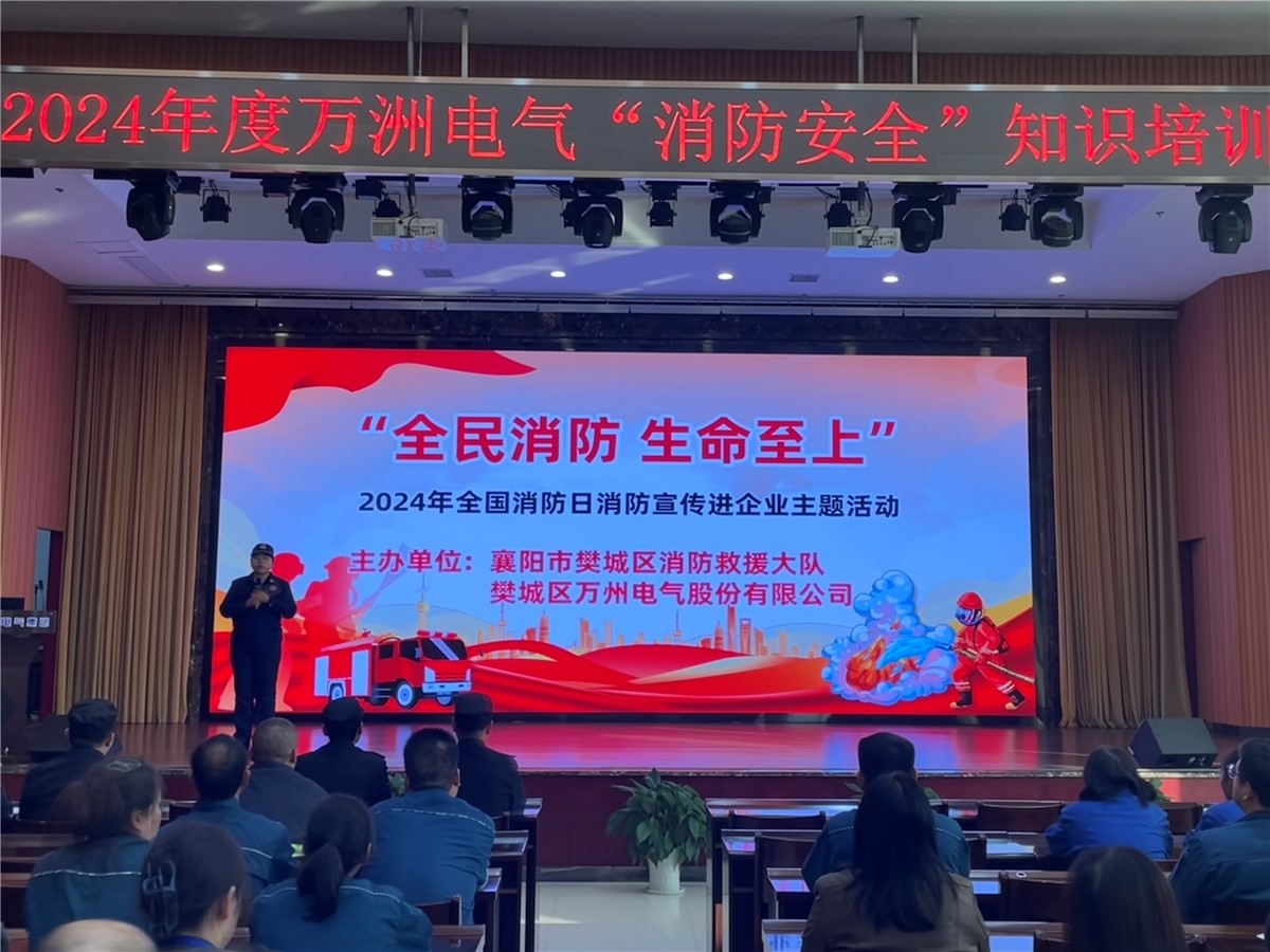 为增强员工消防意识,提高员工突遇火灾等紧急情况的处置能力。11月8日下午,万洲电气专门邀请樊城区消防救援大队到公司开展消防知识培训和救援演练活动,万洲电气、云川光电、万洲机械、襄阳工厂各部门安全员、班组长、骨干等近五十人参加培训。