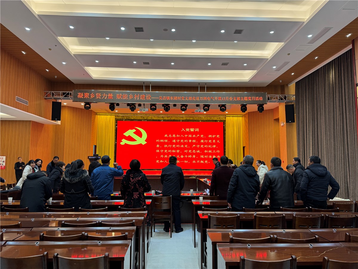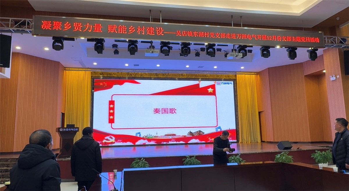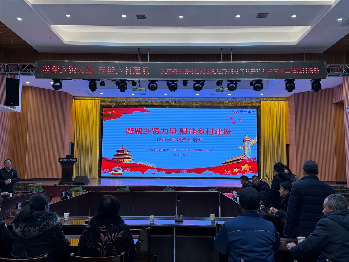 冬日寒风凛冽,会场气氛热烈。12月24日上午,枣阳市吴店镇东赵湖村两委干部、党员代表、群众代表、乡贤代表30余人到万洲电气开展主题党日活动。