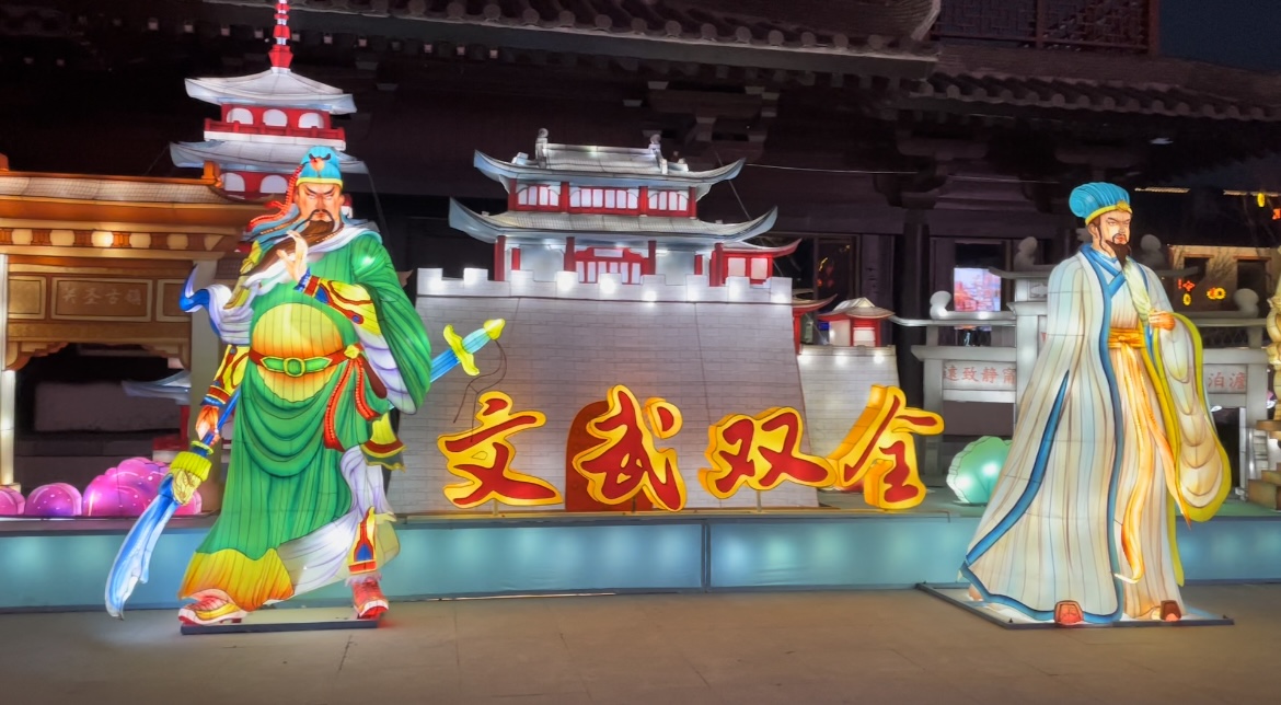 逛庙会、赏花灯。此次灯会是首届襄阳关帝彩灯非遗艺术节,在樊城区工会的精心组织下,杨旭、陈磊跟随劳模团一行观看了精彩的三国文化节目表演,感受了关羽的忠义精神。此次灯会设置了“关圣贯古今”、“蛇年请好运”、“瑞兽迎丰年”、“我如此热爱”四大主题观赏区,栩栩如生的关公、活灵活现的金蛇……,精美绝伦的花灯与深厚的三国文化完美融合,劳模们漫步其中,品味经典。