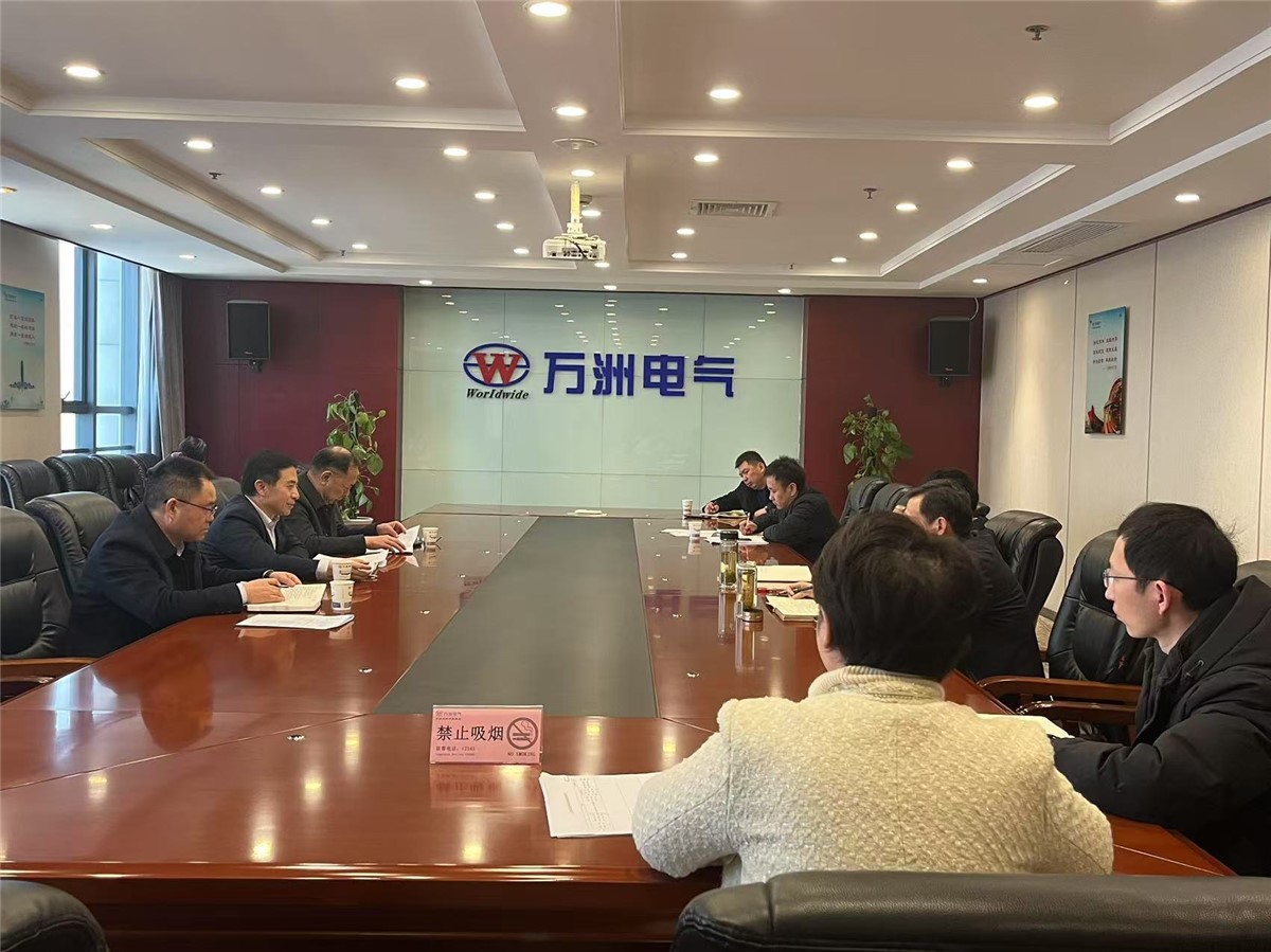 在19楼董事会会议室,赵总首先介绍了公司生产经营情况和当前面临的困难问题,重点汇报了2025年的工作规划和发展目标。克难奋进提升销售业绩、创新加力实施节能新产品与人工智能深度融合、继续引进高端人才、投资升级光电子元器件高端生产线,努力夯实万洲电气中国系统节能领域领跑者地位,推动万州光电冲击红外光电子元器件行业全国冠军企业、力争光电版块上市、照明产品成为中部地区一流品牌……,赵总的企业发展战略部署汇报得到李主席一行的高度肯定,李主席表示,市政协将推动市委市政府出台具体支持政策,帮助万洲推广节能系统,强化重点项目对接,为企业精准服务,助力万洲再上新台阶。