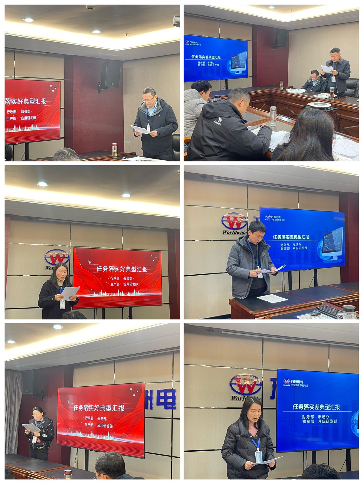 会上,产品大部、市场大部、研发大部、管理大部四个大部分别推选出落实最好和最差的部门参加比拼。各汇报部门围绕“任务落实率、落实成效、未落实原因、后续落实措施”等对五项重点任务展开总结汇报。通过数据展示、目标比对等方式晒出“成绩单”、明确整改项。