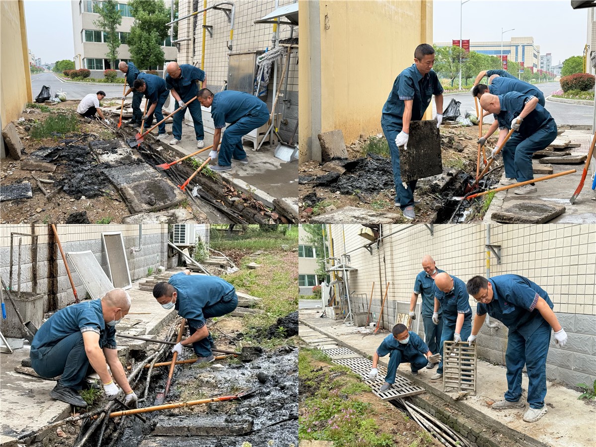 为预防厂区线路安全风险, 5月15日上午,万洲机械志愿者队伍高效完成厂区食堂西侧电缆沟清理工作。