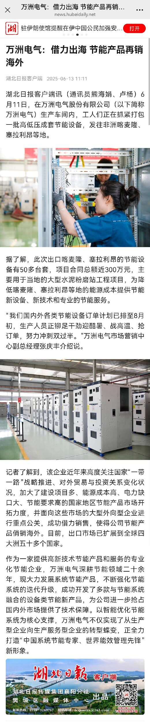 6月11日,在开云集团官网首页(以下简称万洲电气)生产车间内,工人们正在抓紧打包一批高低压成套节能设备,发往非洲喀麦隆、塞拉利昂等地。