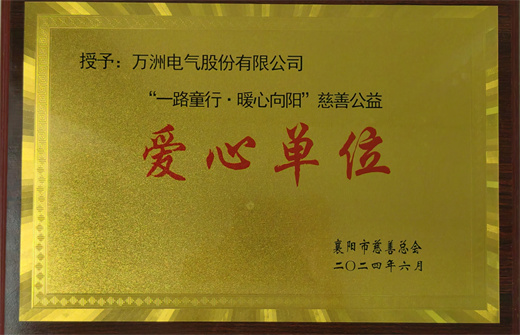 日前,万洲电气被襄阳市慈善总会授予“‘一路童行•暖心向阳’慈善公益爱心单位”荣誉称号。