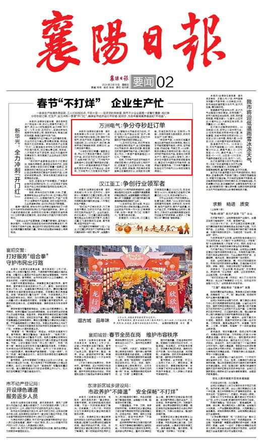 【襄阳日报】万洲电气:争分夺秒赶订单