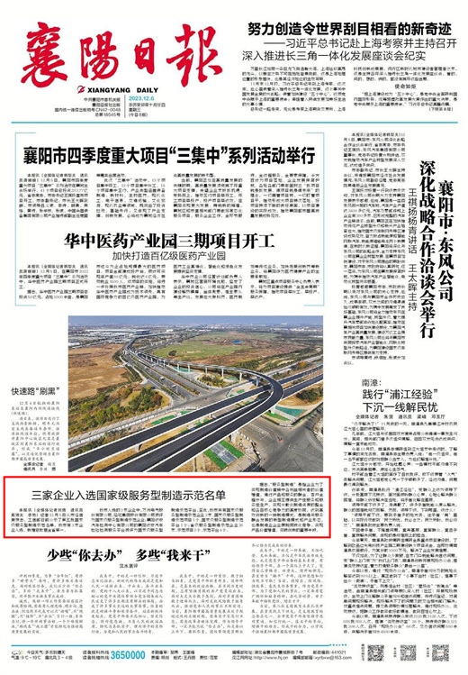 【襄阳日报】三家企业入选国家级服务型制造示范名单