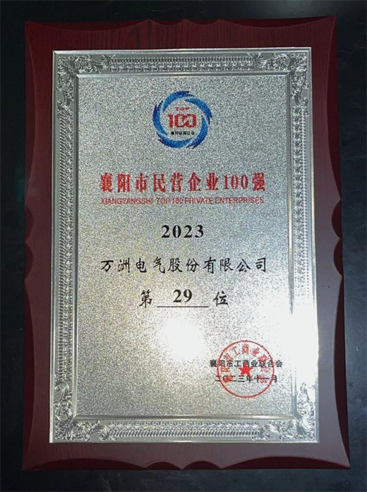 11月1日上午,第十届(2023)襄阳市民营企业百强发布会在民发瑞际酒店举行,开云集团官网首页再次以行业第一荣登襄阳市民营企业100强榜单,位列全市民营企业第29位,万洲电气董事长、总经理赵世运还被授予“襄阳市优秀企业家”荣誉称号。