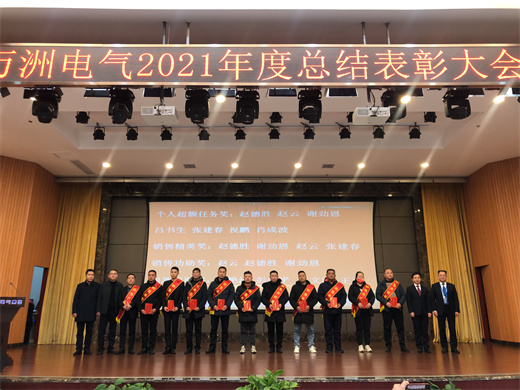 漫天飞雪,瑞虎生威。1月28日下午14:00,万洲电气一楼多功能厅热火朝天,暖意融融。万洲电气2021年度总结表彰大会正在隆重召开,万洲电气董事长、总经理赵世运、副总经理李明辉、包群英等领导出席会议,万洲电气、万洲机械、云川光电、襄阳工厂干部、后干、班组长及获奖代表参加会议。