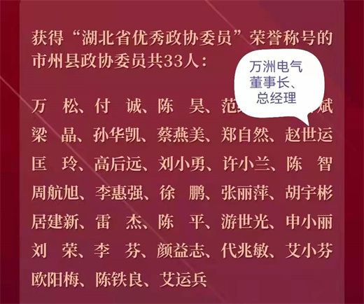 万洲电气董事长、总经理赵世运荣获“湖北省优秀政协委...